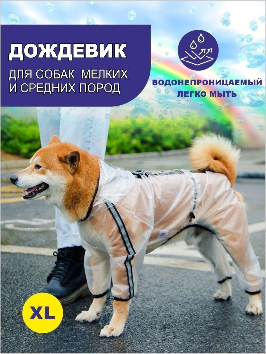 Дождевик для собаки защитит вашего питомца от дождя и ненастной погоды. Комбинезон для собак изготовлен из прозрачного эластичного ПВХ высокой плотности по современной технологии. Плащ от дождя для животных имеет капюшон с козырьком. Швы укреплены специал