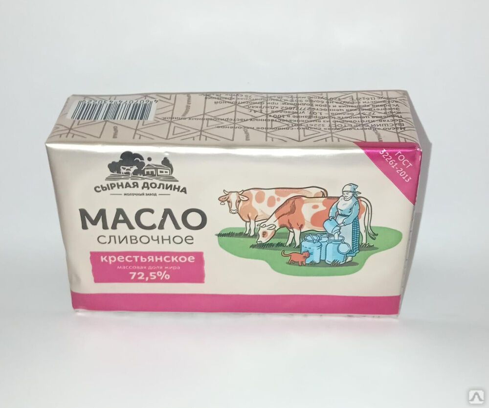 Масло сливочное крестьянское Сырная долина 72,5 % 1х10 180 г