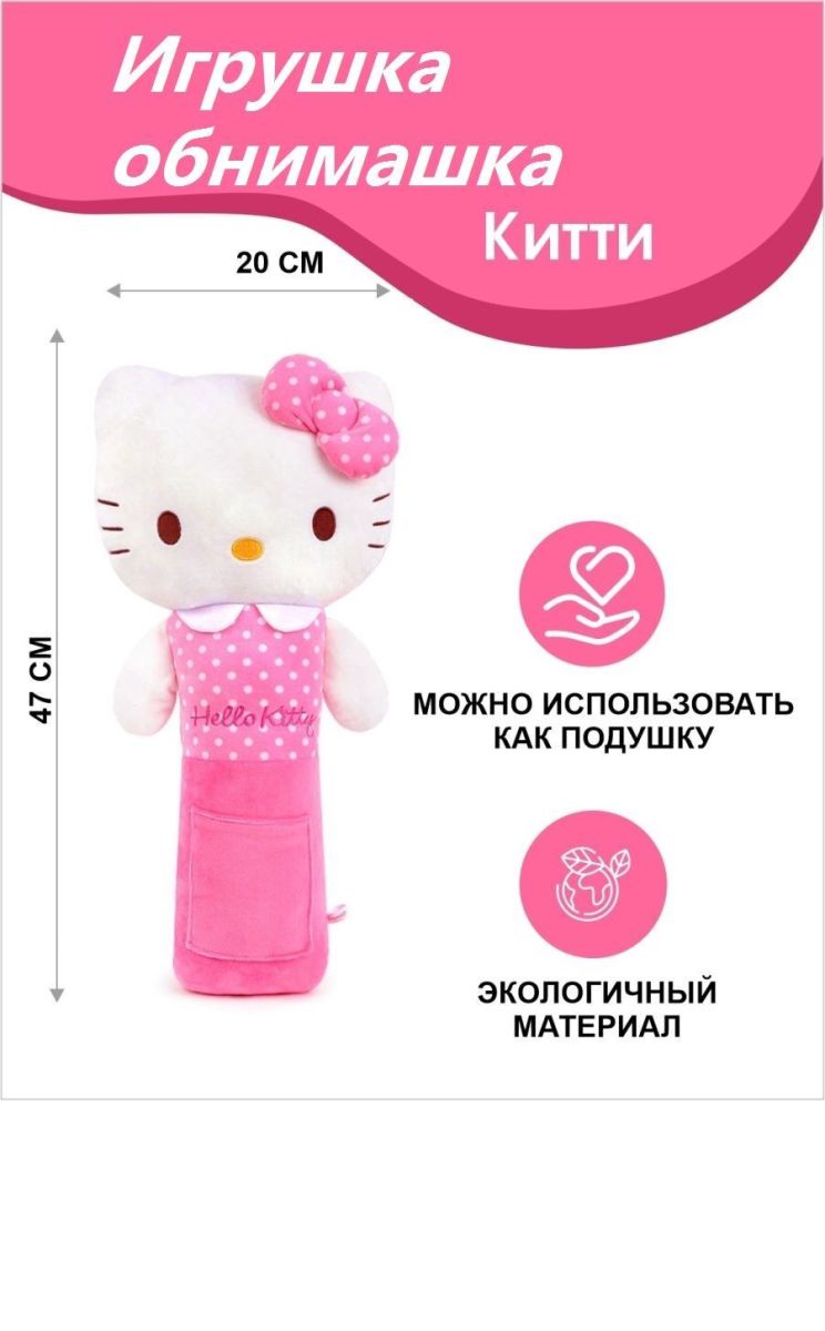Хотите, обеспечить ребенку комфортный и безопасный сон? Купите мягкую игрушку обнимашку. Милая Китти сочетает в себе качество и яркость красок. Игрушку обнимашку можно использовать как подушку. Она сшита из приятного материала с мягким наполнителем, полно