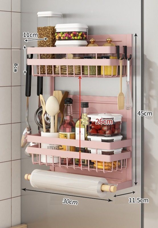 Кухонная полка Розового цвета поможет организовать пространство и оставить нужные вещи под рукой. Это удобная система хранения крепится магнитом на металлическую поверхность, в том числе на холодильник, микроволновку, стиральную машину. Многоцелевая, хран