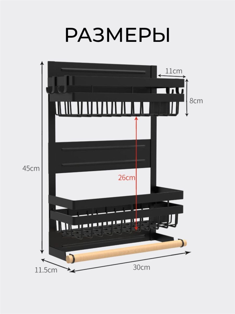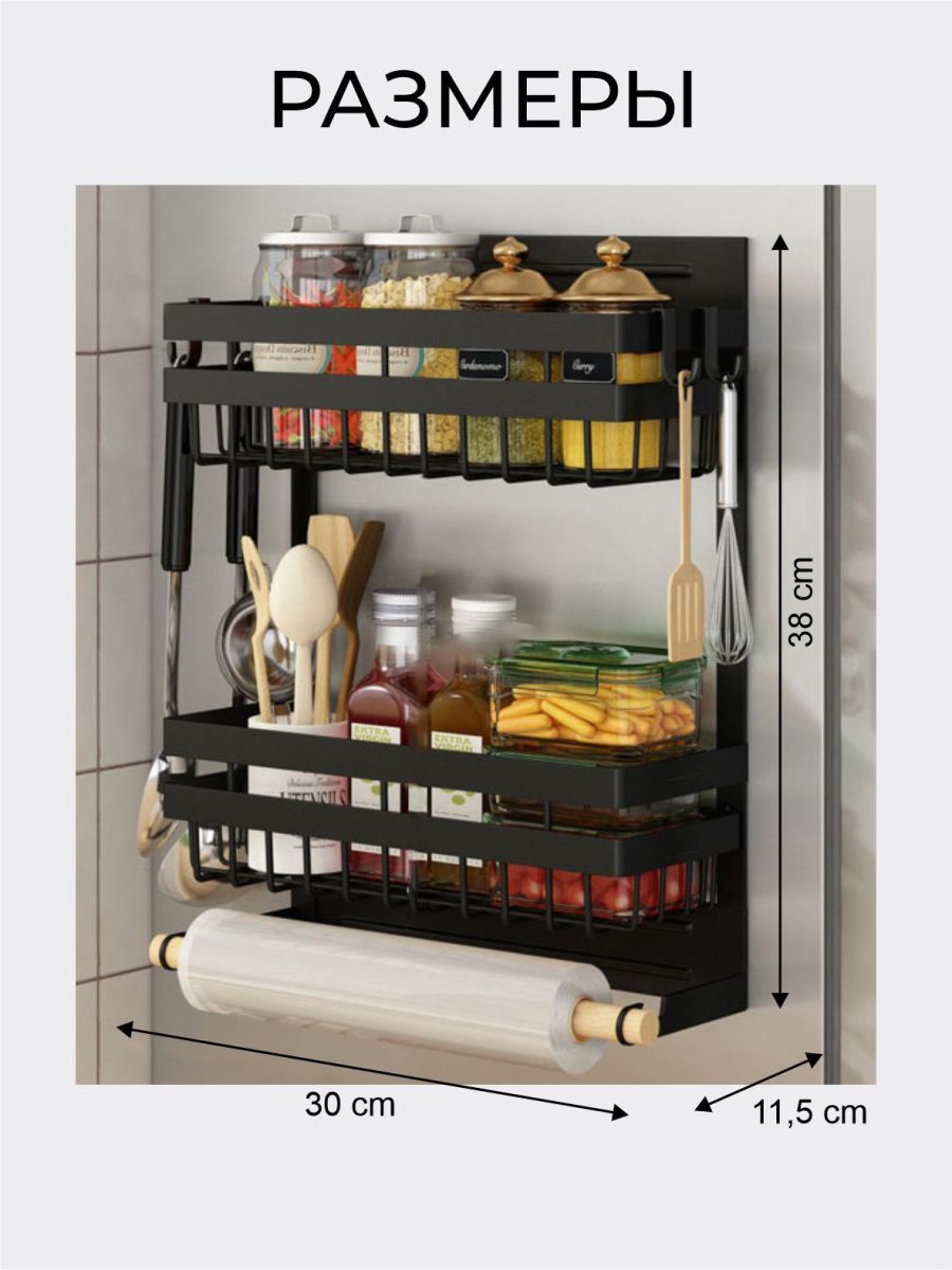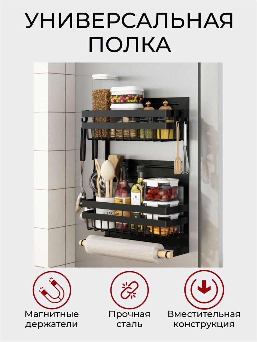 Кухонные стеллажи, черные холодильные стеллажи, подвесные для микроволновой печи, многоцелевые пакеты для хранения свежих продуктов, магнитное всасывание, хранение приправ без перфорации. Вес полок, г.: маленькая - 1200, средняя - 1450, большая - 2300.Раз