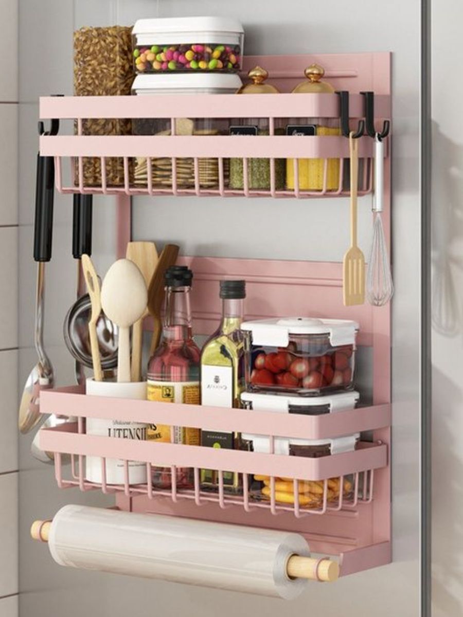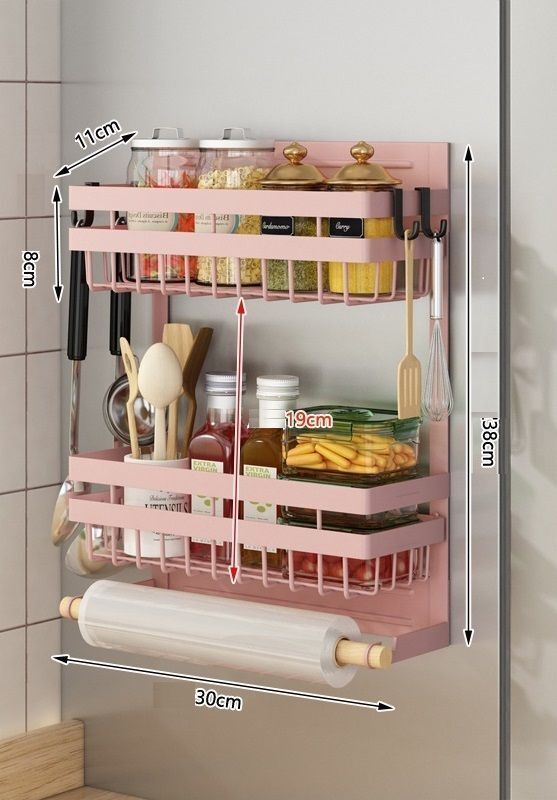 Кухонная полка Розового цвета поможет организовать пространство и оставить нужные вещи под рукой. Это удобная система хранения крепится магнитом на металлическую поверхность, в том числе на холодильник, микроволновку, стиральную машину. Многоцелевая, хран
