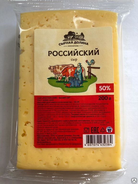Сыр Российский 200 г Юговской КМП 50% брикет1х10 Россия