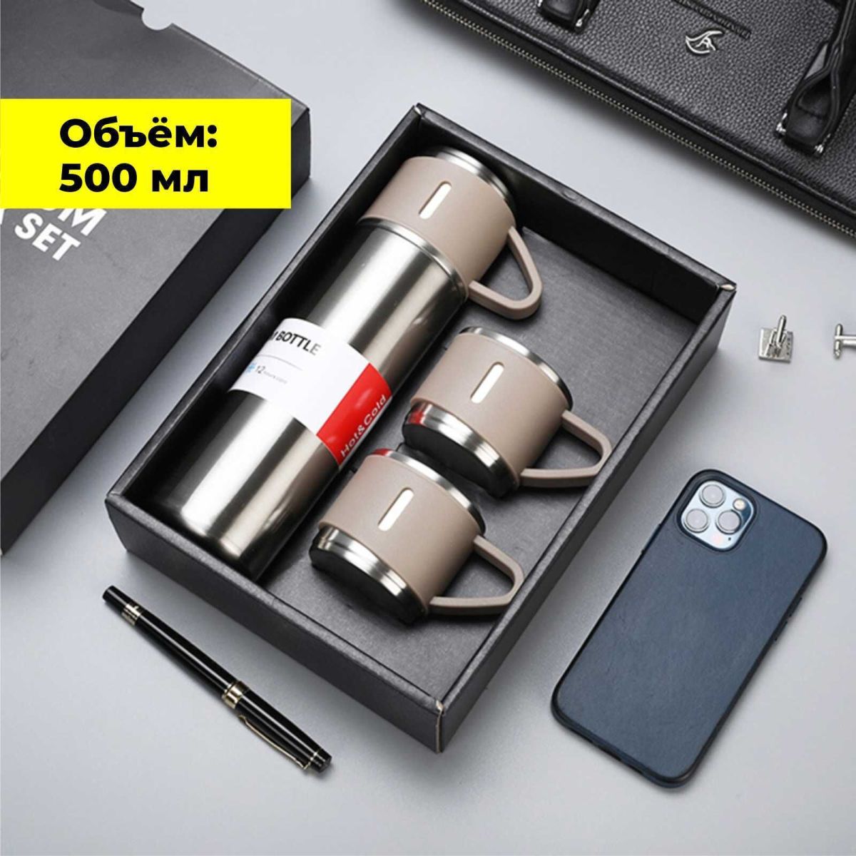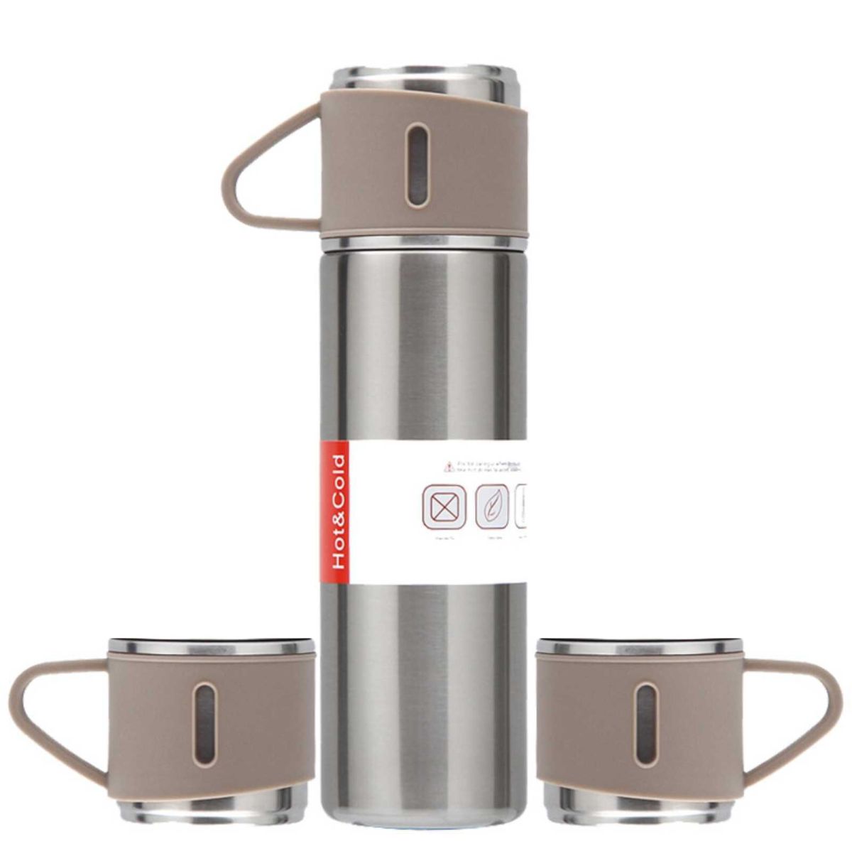 термос с кружками серебристый